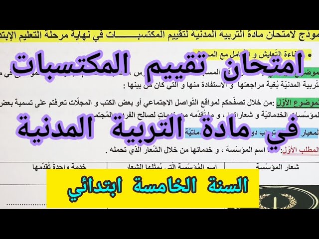 تقييم المكتسبات للسنة الخامسة ابتدائي